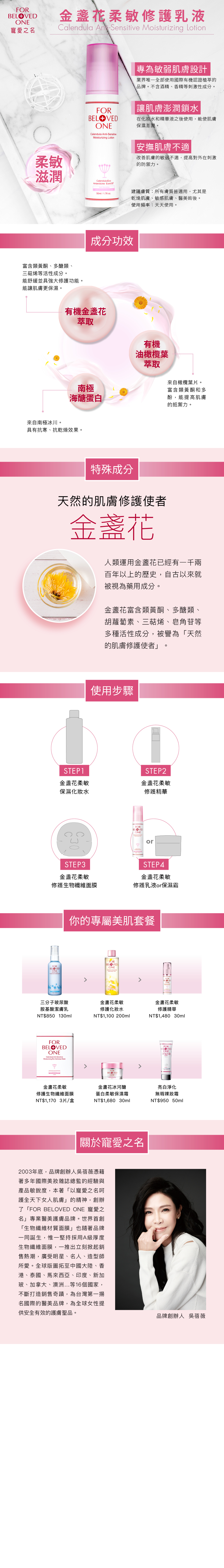 ①專為敏弱肌設計,添加有機金盞花高效修護肌膚,舒緩不適,改善肌膚問題。